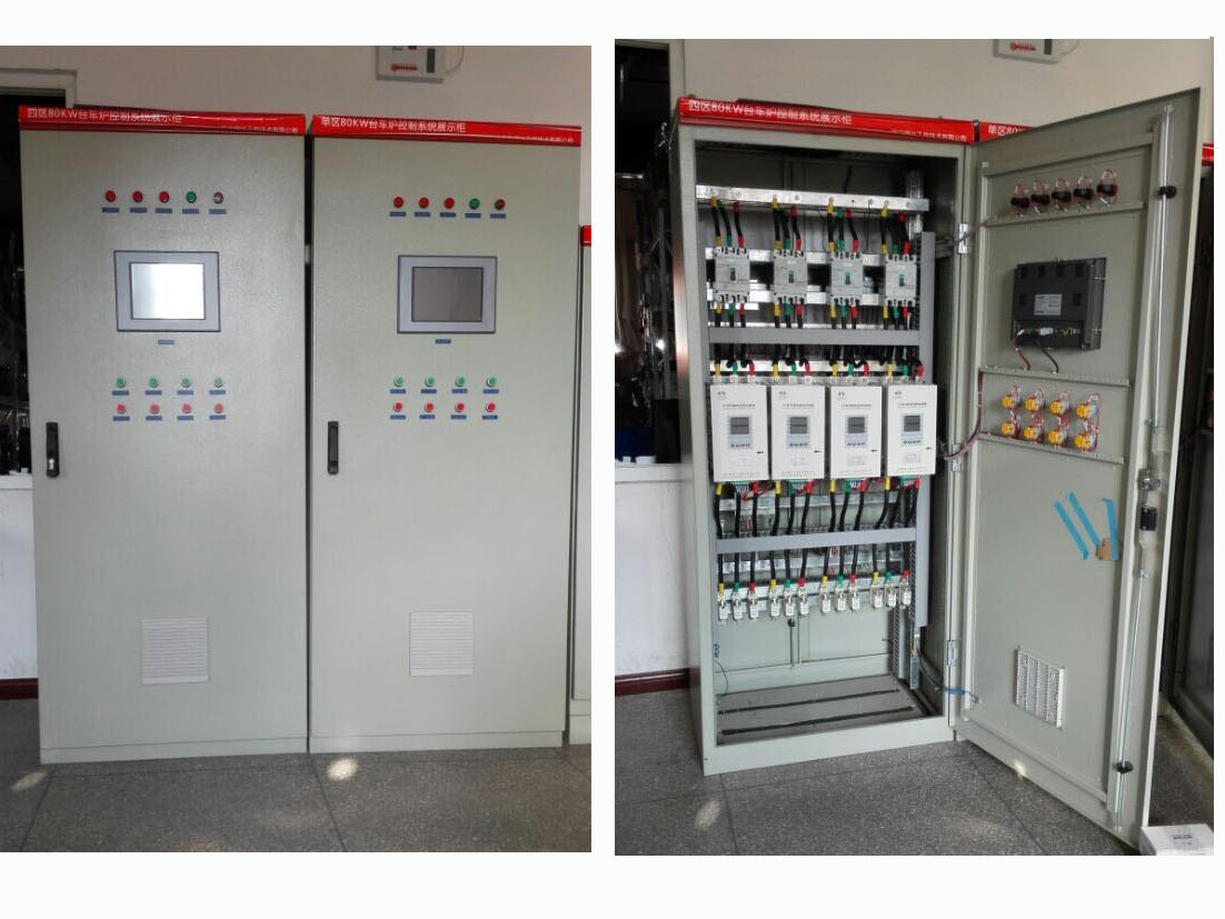 1、整个温度控制系统采用标准的控制柜,主控制柜采用立式2000*1000*800mm组合柜,温度控制主回路采用可控硅过零触发器,设有过载、过流保护等功能。次调节功能分自动和手动模式,自动可与温控表形成自动控温过程。手动与温控表脱机,手动调节功率。在自动或手动调节模式中有限制加热功率等功能。温控仪表选用先进的高精度PID自整定型仪表,具有多量程输入,温度任意设定,多种报警功能。温度信号通过热电偶来接受毫伏信号,经放大运算再换算,数显仪表输出4-20mA电流信号,控制精度±1℃。整个温度控制系统具有热电偶修正功能、功率限制功能、超温报警功能。当炉门打开时自动切断加热主电路,实现连锁保护。整个控制具有控温精度高、炉温平稳、温度波动小。