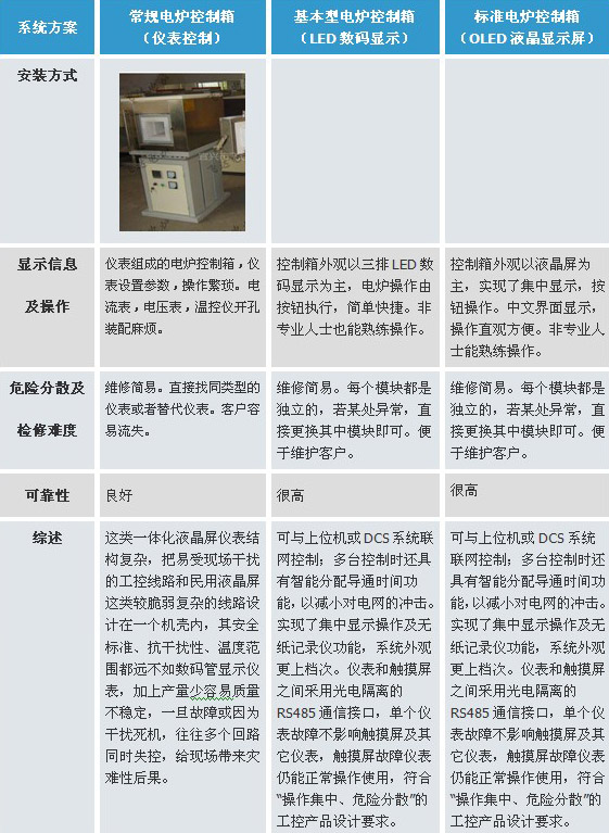 标准型电炉控制箱与常规仪表控制箱比较