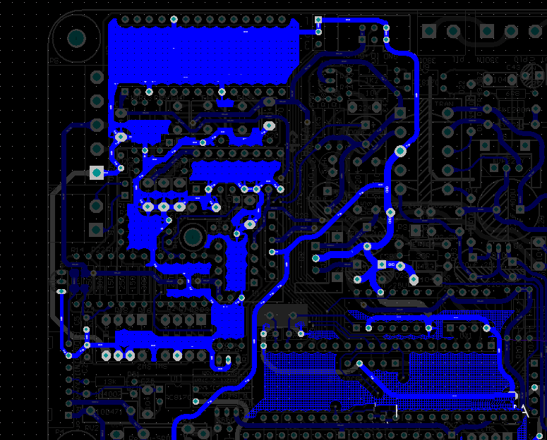 3).双层PCB板上的地线尽可能的大面积铺铜,正面和背面的地线用过孔连接起来。