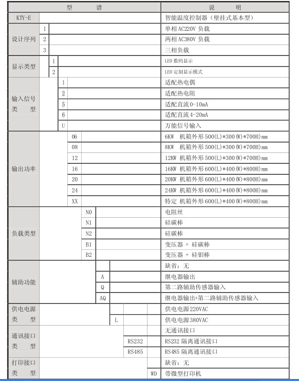 KTY-E1000/2000/3000系列智能温度控制器为壁挂式基本型智能温度控制器,采用LED数码显示,集成智能PID调节模块、可控硅及触发模块等,适用于控制要求高,功能参数可直观灵活配置,有手动控制需求的场合,适用于各种中小型工业加热设备配套。实现对各种单个工业电炉的温度控制。- 功能特点