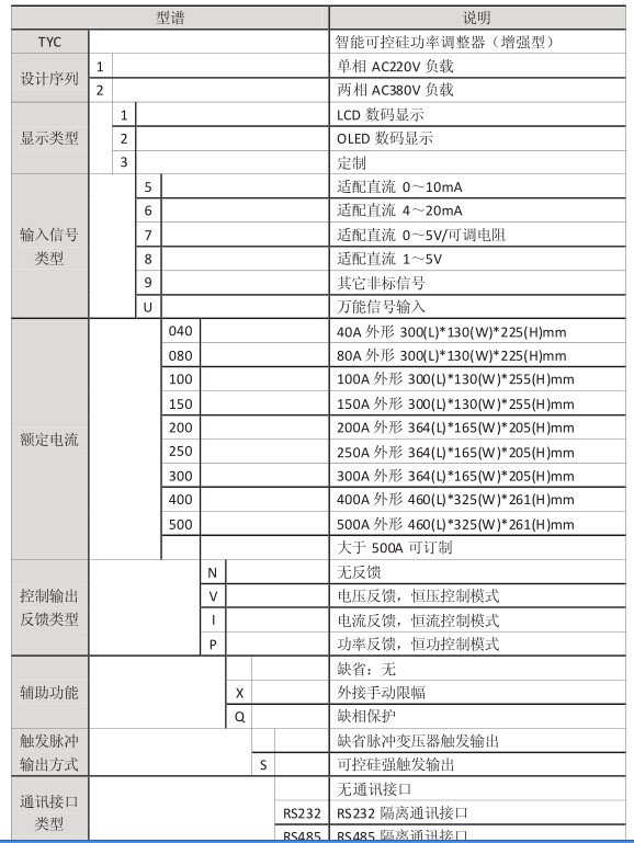 - 多种控制方式可选(移相、定周期过零和变周期过零),支持多种负载接法(星形接零、星形不接零或三角形)