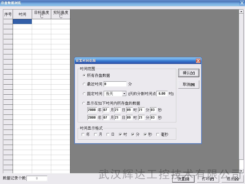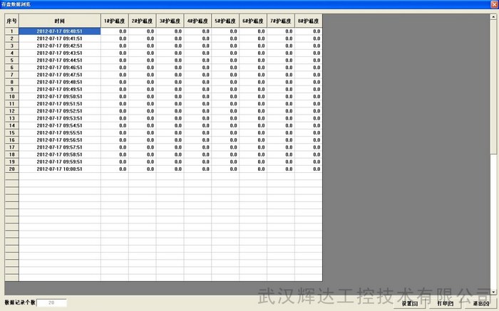 5.功能完善的数据记录方式,自动生成表格,供随时查阅、使用。9台电炉的温度数据通过一个表格进行数据记录(EXCEL格式),查询时可任意选定日期时间进行查询。