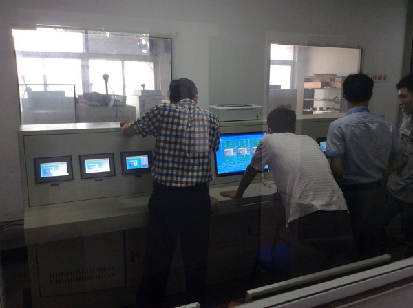 某半导体集团箱式炉控制实验室9台箱式炉,其中七台15KW箱式炉因实现集中控制更换其主加热控制系统;另两台15KW箱式炉因仅对温控仪增加通讯功能使之能与PC上位机实现数据交换达到远程控制。更换控制回路的七台箱式炉主控制采用武汉辉达工控的KY31055N1RS485一体化智能温控可控硅调压器,并采用7’触摸屏实现操作与控制功能。以上9台箱式炉最终由PC上位机组成热处理集散控制系统,以便对箱式炉的工作做实时的详细记录及实现远程监控,以达到更好的管理的目的。
