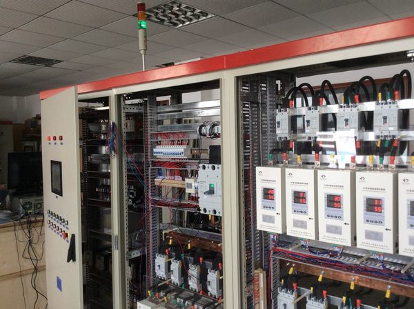 整个温度控制系统采用模块化的结构,主电路由空开、接触器、快速熔断器、可控硅模块(带散热器),冷却风扇及相关监测和保护电路组成,监测及控制电路包括热电偶、智能PID温度控制模块、可控硅触发模块、电流互感器、电流变送器、电压变送器、智能多回路数据采集器等组成。其他辅助电路包括指示灯、按钮、开关、报警器等。