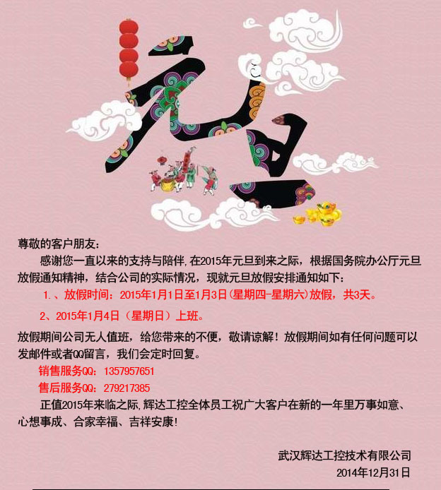 辉达工控2015年元旦放假通知