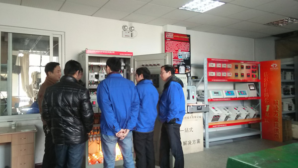 会议开始,在辉达工控工作人员的陪同下,各位电炉厂嘉宾首先参观了辉达工控产品展示车间,技术人员详细地为各位嘉宾介绍了智能电炉控制柜、KSY系列温度控制器、一体化KY系列智能温控器、集散控制系统软件等等产品以及应用的一些领先技术。此次参会的嘉宾都是各个电炉厂的老总和技术工程师,都是电炉行业的技术专家,通过现场直观的演示操作和讲解之后,他们对一些新的技术和辉达工控产品产生了浓厚的兴趣。