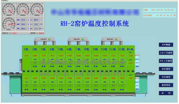 4、热处理设备的整体监控。通过计算机可以直观全面的看到热处理车间每一台电炉的工作情况,系统总貌图可以直接显示整个系统的运行状况,显示各个炉子各个温区的温度采集值、给定值、功率输出百分比、电流、电压、报警状态、控制模式、运行模式等等状态。一般情况下直接在操作室计算机前进行操作,而不用时刻都前往工作环境不太好的车间去。计算机上的操作系统菜单和界面简洁明了,程序功能齐全、结构清晰、独立性强,操作简单,占用资源小,更好的保证数据的实时性和可靠性,同时调试和维护也十分的方便。