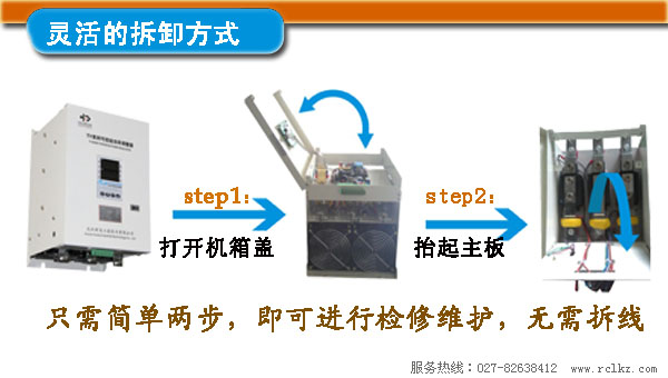 一体化的设计使得整个控制系统结构变得简单明了,但是会有用户担心在后期出现故障需要维修时造成麻烦。KY系列温控器您完全无需担心这个问题。按照如下图示,“打开机箱--抬起主板”两步即可进行维护维修的操作,无需拆线或费劲拆卸机箱。