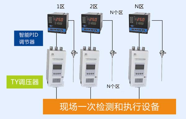 采用传统智能PID调节仪表作为主控制仪表,配置可控硅、固态继电器或交流接触器等功率器件完成负载功率控制及报警,通过继电组合装置实现设备相关动作控制,温度、电量、压力等参数采用对应的智能数显仪表显示,采用圆图有纸记录仪或无纸记录仪进行数据记录和存储。