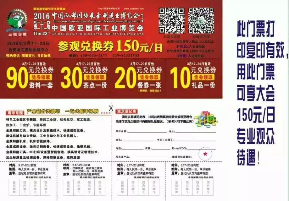 凡前来参展专业观众可赠送价值150元兑换券