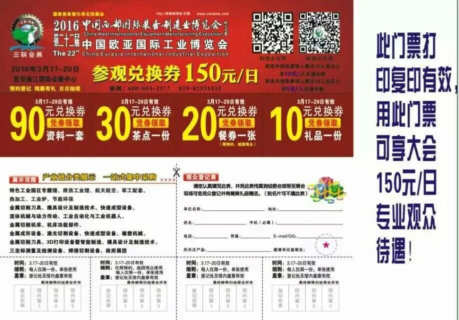 辉达工控即将参加3月17-20日在西安举办的”2016第22届中国西部国际装备制造业博览会“,在此邀请新老客户朋友前往参观交流,到场可凭最下方图片领取价值150元兑换券,有意前往观展客户可提前通过微信与我司预约。